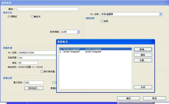 數據保存采用周期式采樣,也可以采用觸發式采樣數據保存,數據來源是PLC內的VW 存儲區,如下圖所示