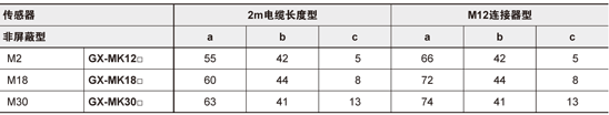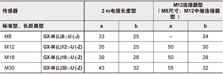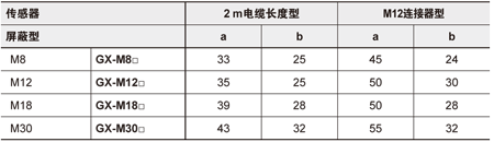 | 型號 | 接近時ON | GX-M8A□ | GX-M12A□ | GX-18A□ | GX-M30A□ | ||||||||