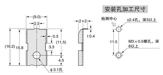(注2): 將長距離型安裝到磁性體(鐵板等)時,請將附帶的鋁片或t0.3mm以上、大小30×39.5mm以上(GXL-15HLU型為30×30mm)以上的鋁板置于傳感器與安裝板之間使用。在非磁性金屬(鋁等)或絕緣體上安裝時不需要。