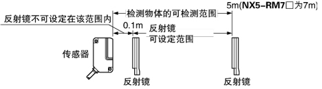回歸反射型傳感器的檢測距離是相對(duì)于反射鏡RF-230的數(shù)值。 外,檢測距離表示反射鏡的可設(shè)范圍。檢測物體的檢測距離也可為0.1m以下。