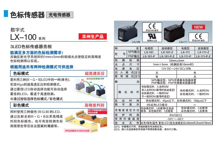 數(shù)字式色標(biāo)傳感器[放大器內(nèi)置] LX-100系列 LX-101-Z(LX-101-P-Z)