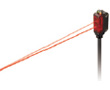 邊觀察映照在光軸調整屏上的紅色光點,邊結合實物進行光軸調節,可瞬間確認的受光位置。右圖表示對自動鉛筆筆芯(檢測物體)進行目視調節的示例。 |