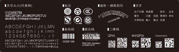 文字大小設置,呈扇形的、傾斜狀印字的調整功能。印字內容的步進& 重復功能。印字范圍內的自由排版功能。各類的條形碼、二維碼、組件的自動設定功能。