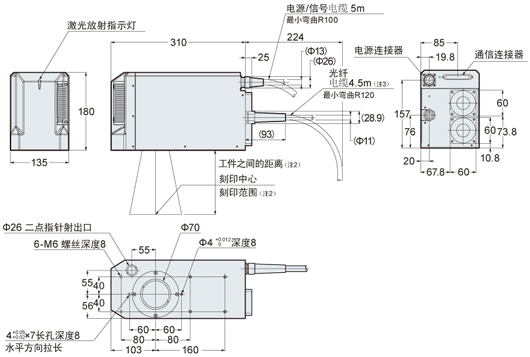 配備Z軸行程機構,刻印區域達到(W135×H180×D310mm)50mm*。