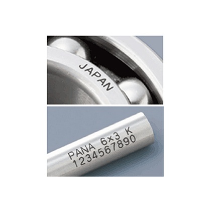 黑色刻印是一種工藝技術,該技術利用激光照射加熱金屬表面形成氧化膜,由此在金屬表面刻印黑色文字※。與金屬表面深挖的傳統技術相比,打標部分無凹痕和毛刺,能保持金屬表面的平整。對于目標對象,例如需要高表面精度的軸承,黑色刻印是最佳的加工方法。