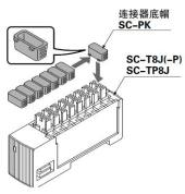 使用壓接式插針連接器,將輸入/輸出設備連接 至1通道和8通道連接器輸入單元,也可以連接 至8通道連接器輸入/輸出混合單元。 1通道連接器輸入擴展單元附帶1個SL-CP1。 |