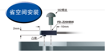 FT-Z□HBW、FD-Z□HBW采用光纖彎曲機構。1種型號可以實現頂端檢測、側面檢測2種安裝方式。