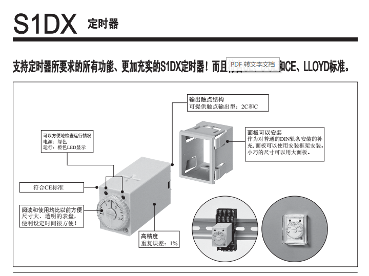 有透明大刻度盤的小型模擬定時(shí)器。時(shí)間設(shè)定簡單且高精度。可安裝在DIN軌道上或面板內(nèi)。