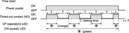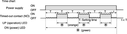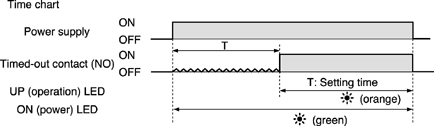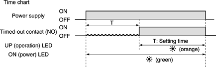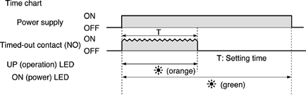 When power is turned on, the output contact performs the on operation at the same time power turns on, only for the set time.