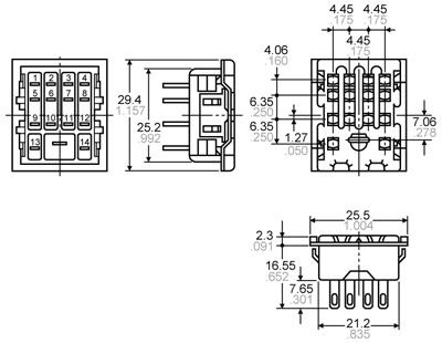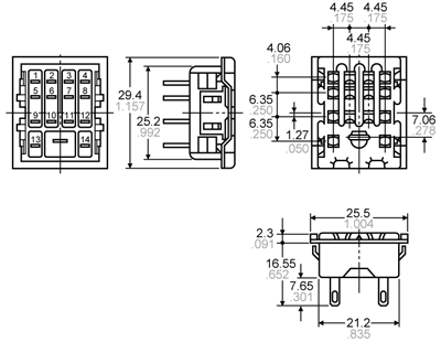 Dimensions The difference between the HC2 and HC4 sockets is only the number of the pins. Their appearances and sizes are the same.