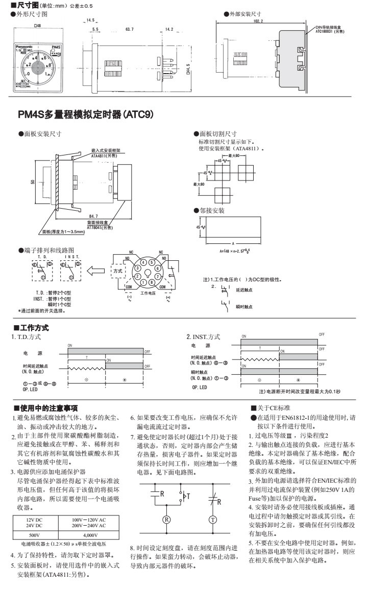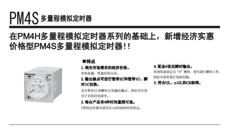 模擬式且價格經濟的定時器。通過開關可進行電源啟動延遲動作和自保持電路的切換。