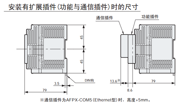 FP-X 擴展插件(功能&通信插件)安裝時尺寸