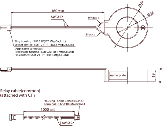 | ※ | 各種專用電流互感器(CT)中分別附帶有1m規格的延長電纜。 |