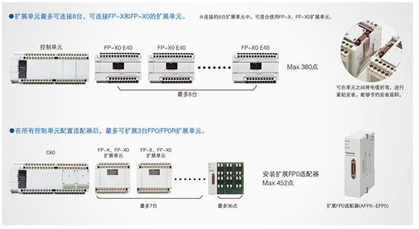 | 控制單元 | 擴展單元 | 擴展插件(AFPX-TR8、AFPX-TR6P、AFPX-IN4T3) | |||