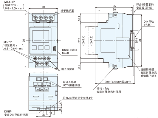 各種專用電流互感器(CT)中分別附帶有1m規格的延長電纜。