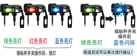 可在綠(初始狀態)、紅、藍、2階段顯示 (藍/綠) 中選擇指示燈的顏色※。