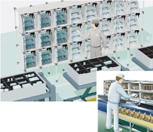 因遮板關著,可有效的防止錯誤。并且因采用懸臂式構造和小型尺寸,還可用于小型部品的貨架。 |