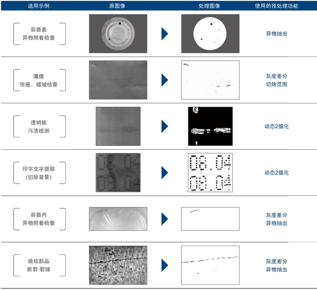 備有21種豐富的灰度預處理功能。即使是照明不均勻或產生干擾的圖像,也可實現更穩定的檢查。