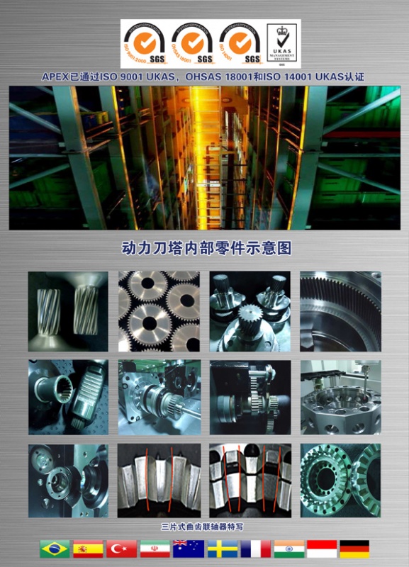 2)大尺寸超高強度的三片式曲齒聯軸器,確保優異的定位精度與重復精度,并有低噪音高扭力的動力傳輸,高耐用性,非分離式聯軸設計,防止切削屑片或冷卻液對機構可能造成的污染。