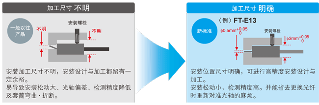 極細外形, 可使用固定螺絲在狹小場所進行安裝。光纖前端部為細徑套筒,最適于狹小場所的檢測以及 微小物體的檢測。