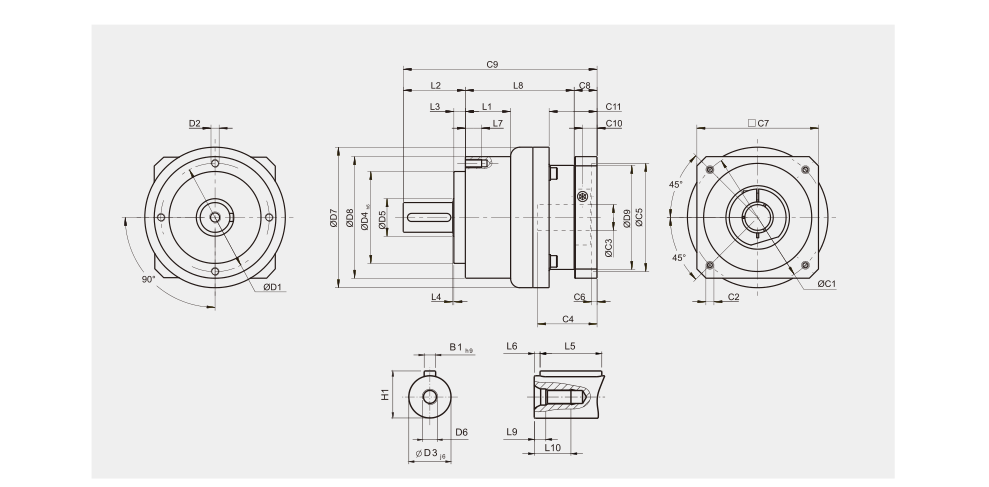 螺旋齒輪設計;筒夾式的鎖緊機構;馬達連接板的模組化設計;一體式的齒輪箱本體;NyoGel 792D 合成潤滑油脂;一體式的臂架;先進的離子氮化技術;3D拓蹼的設計分析技術;滿針的滾針軸承設計;輸出端專利的油封系統設計