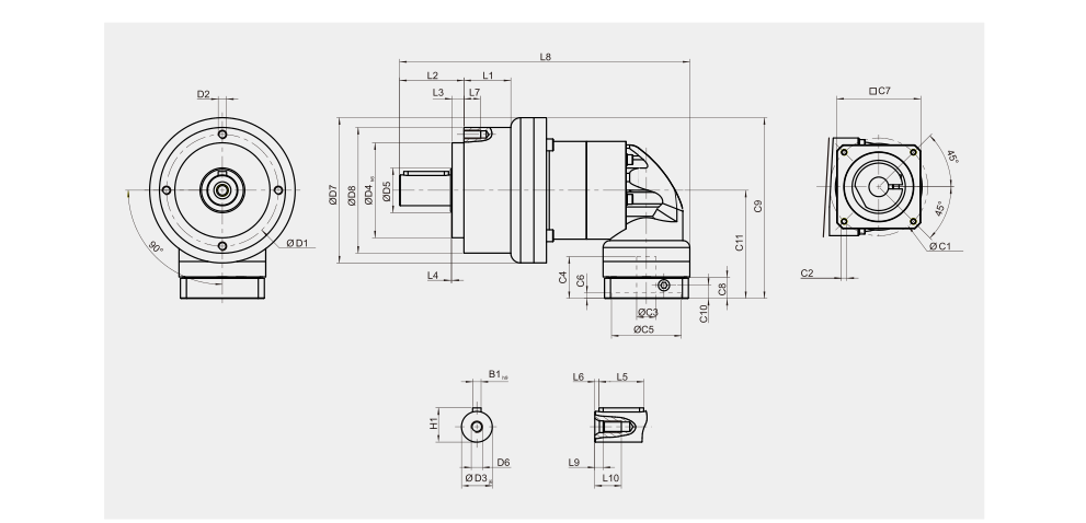 AER系列 採用蝸線傘齒輪設計,容許伺服馬達高轉速的輸入,得到最高扭距的輸出,嚙合蝸線經最佳化的運動誤差分析,自設的精密研磨設備,製造出最低的運轉背隙,效率高、壽命長、免保養。