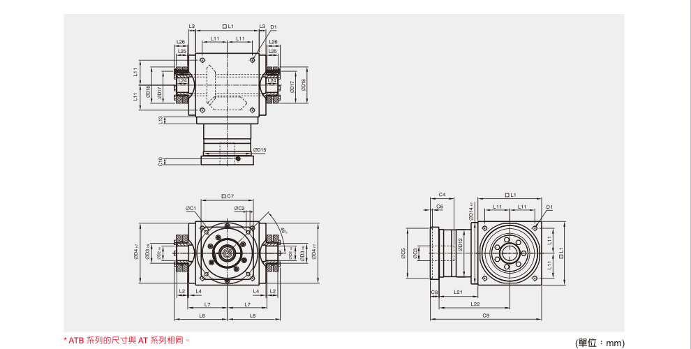 一體化不銹鋼本體確保最大剛性與耐蝕性,多重精密加工表面易于組裝。采用頂級蝸線傘齒輪的設計軟體。多重不銹鋼輸出入力軸的設計。高精密研磨的蝸線傘齒輪組結合最佳化設計的齒輪組。高扭矩背隙的精簡結構設計。專利的油封設計。