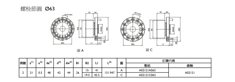 APEX臺灣精銳直齒齒輪(曲齒聯結式 / EN ISO 9409-I-A) 精度等級 Quality DIN 4 / 合金鋼 螺栓節圓Φ63 (模數M:2)
