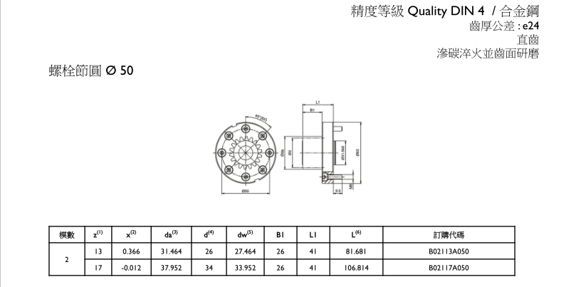 型 號:Q DIN 4合金鋼 Φ50 (M:2)