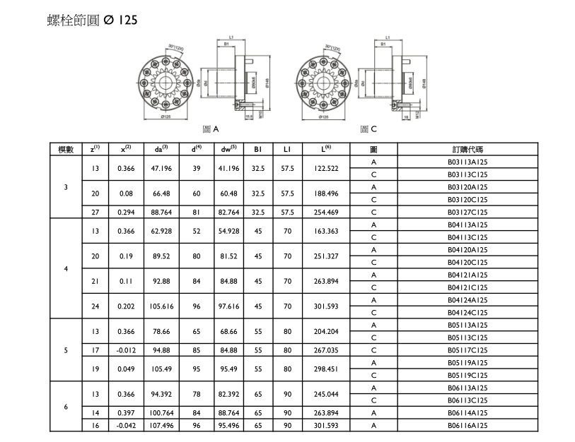 APEX臺(tái)灣精銳直齒齒輪(焊接式 / EN ISO 9409-I-A) 精度等級(jí) Quality DIN 4 / 合金鋼 螺栓節(jié)圓Φ125 (模數(shù)M:3、4、5、6)