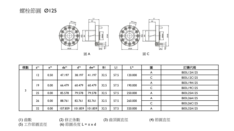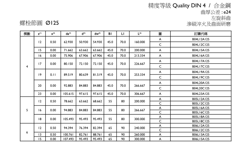 APEX臺灣精銳斜齒齒輪(焊接式 / EN ISO 9409-I-A) 精度等級 Quality DIN 4 / 合金鋼 螺栓節(jié)圓Φ125 (模數(shù)M:3、4、5、6)