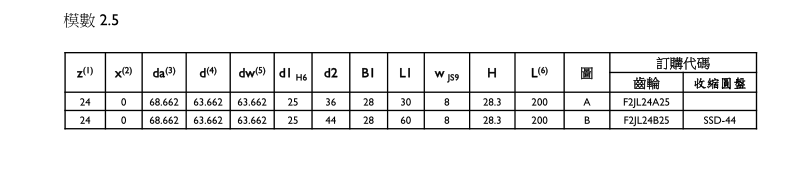 APEX臺灣精銳斜齒齒輪(鍵槽式 ) 精度等級 Quality DIN 5 / 合金鋼 (模數(shù)M:2.5)