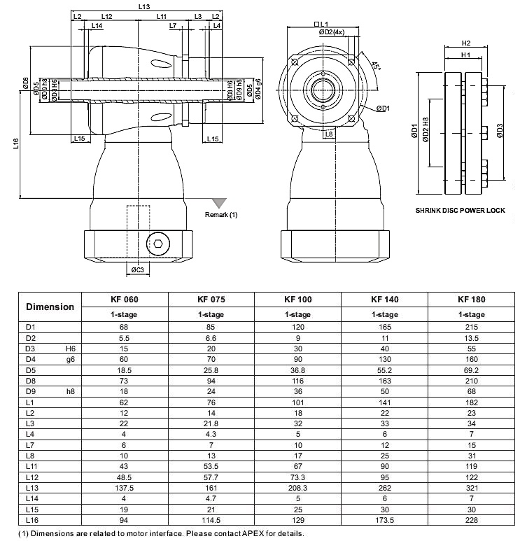 APEX臺灣精銳減速機KF-S4系列KF210 單節(S4中空軸) 減速比3-10