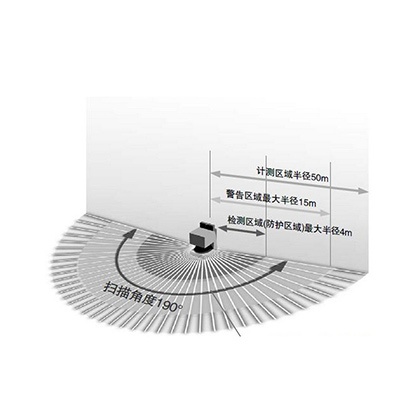 對警告區(qū)域(半徑15m的半圓內(nèi))和檢測區(qū)域(防護區(qū)域)(半徑4m的半圓內(nèi))這2個區(qū)域進行大范圍監(jiān)視。在監(jiān)視范圍內(nèi)不僅可以自由設(shè)定各區(qū)域的形狀,還可對總共8個區(qū)域進行切換,而且可在動作時切換區(qū)域。