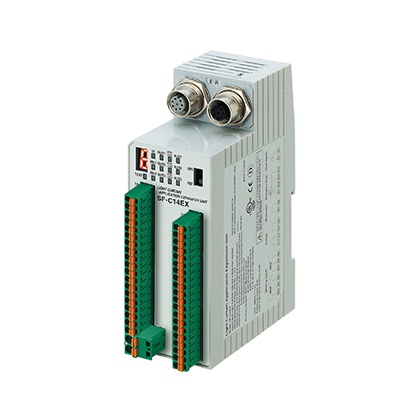 應(yīng)用擴(kuò)展單元SF-C14EX(-01)可以直接連接光幕傳感器、屏蔽傳感器、屏蔽燈,因此可以簡(jiǎn)單地構(gòu)建屏蔽控制電路。