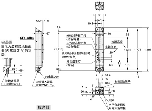 背面安裝支架:投光器和受光器用2個1套、測試桿:1根、 接地適配器(內螺紋G1/2):1個 |