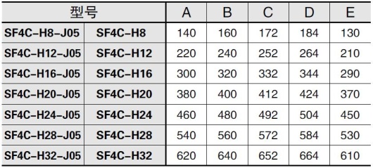 | 型號 | SF4C-H□-J05 | SF4C-H□ | |