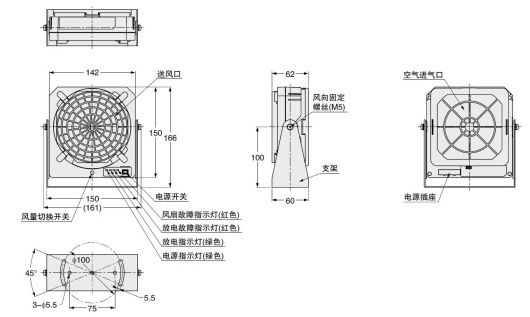 | 指示燈 | 放電故障(紅色)、風(fēng)扇故障(紅色)、電源(綠色)、放電(綠色) | ||