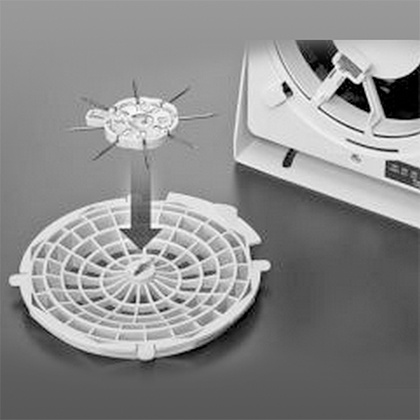 ●作為風(fēng)扇直徑120mm的靜電消除器,可節(jié)省工作臺的占用面積,提高效率。 |